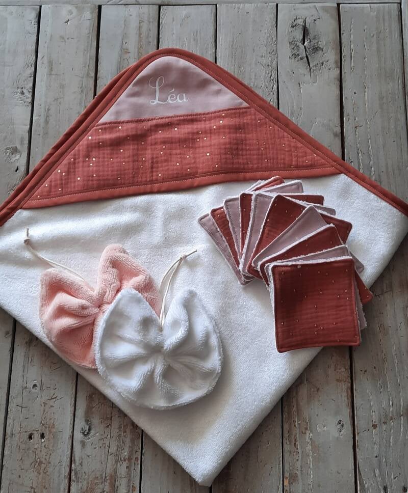 Couverture bébé entièrement molletonné, doublé en coton et double gaze sur le devant et un tissu Minky pour le coté doux et chaud.