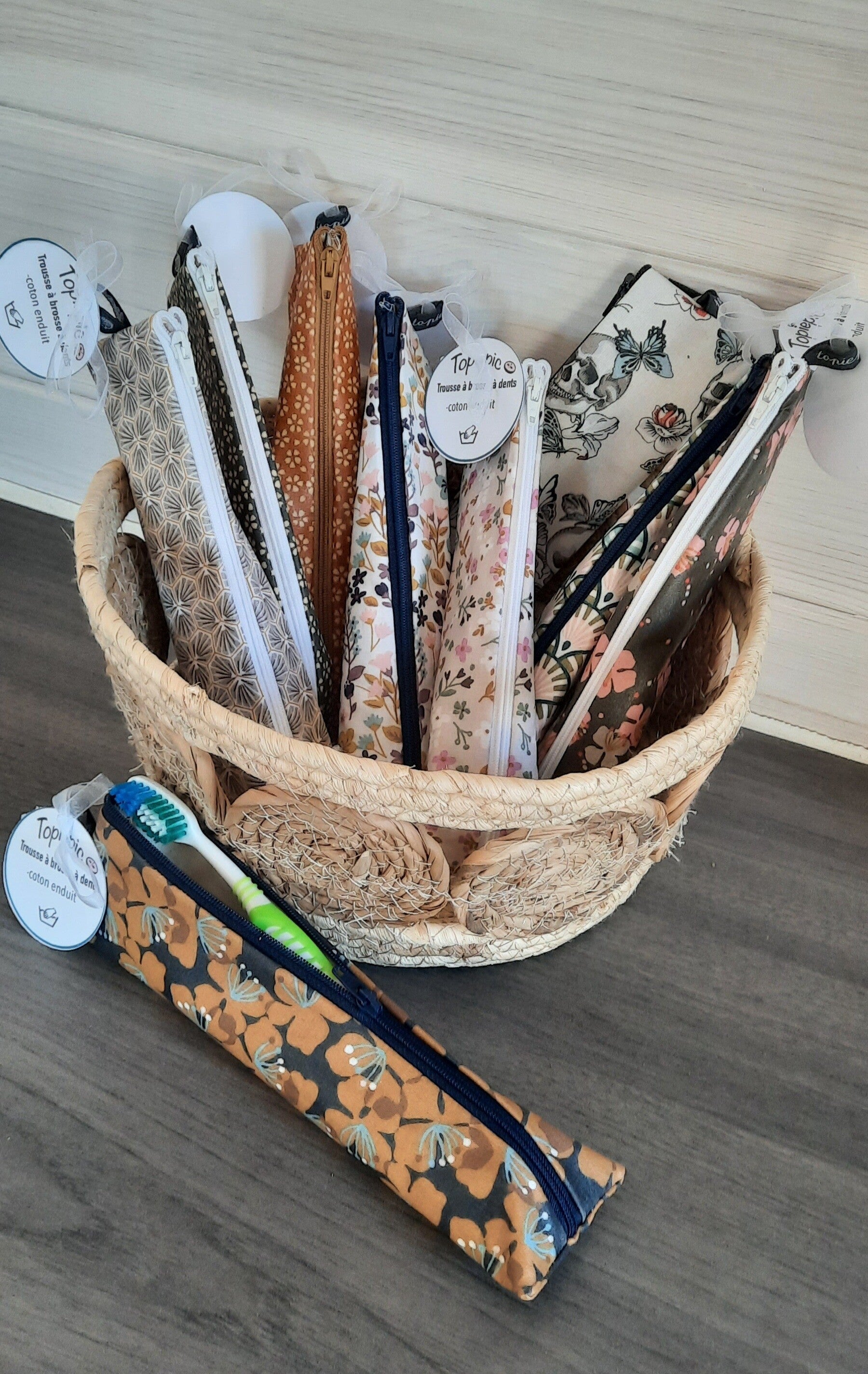 Idéal au fond d'un sac ou d'une trousse de toilette, l’étui à brosse à dents réalisé entièrement en coton enduit vous suivra partout.