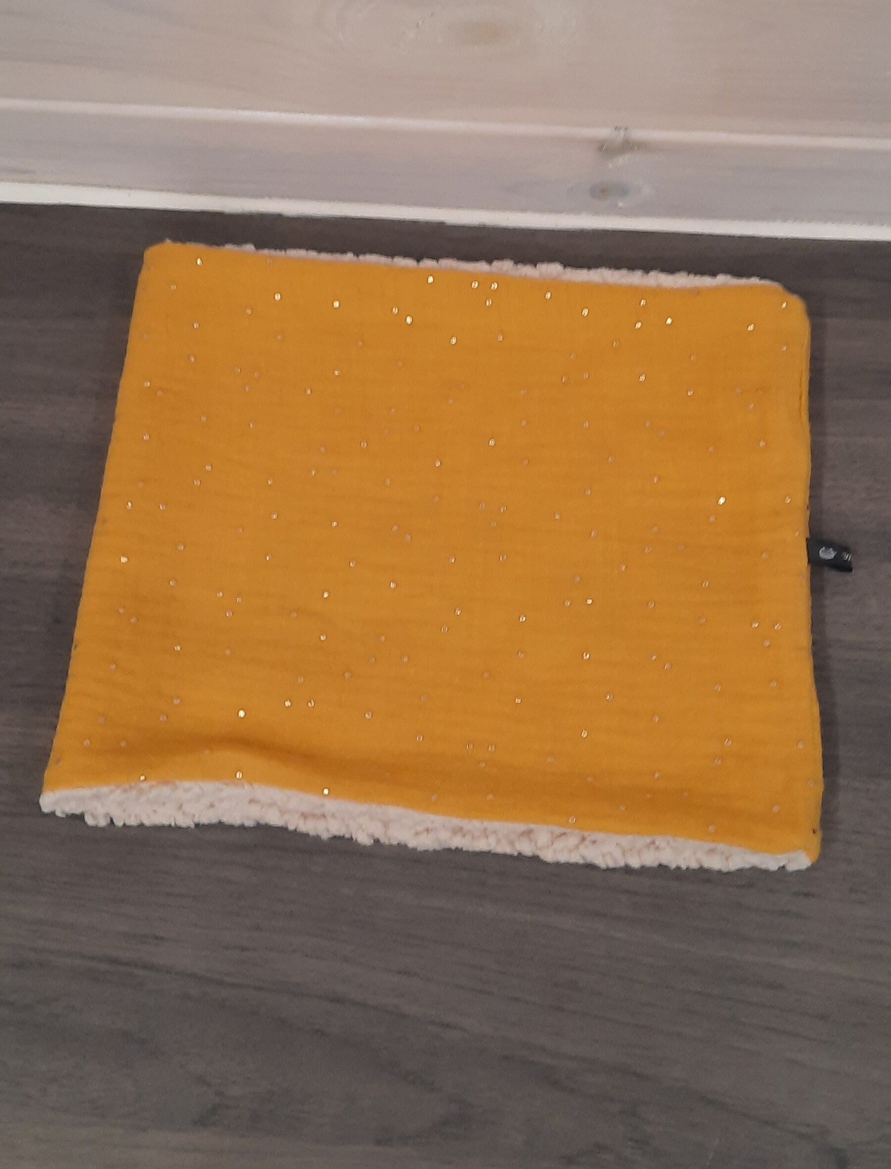 Ce joli tour de cou bien chaud est composé d'un tissu Double Gaze de coton et d'un tissu sherpa bien chaud.